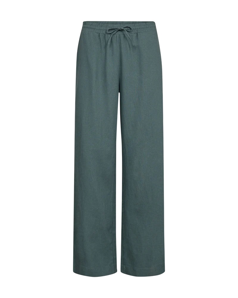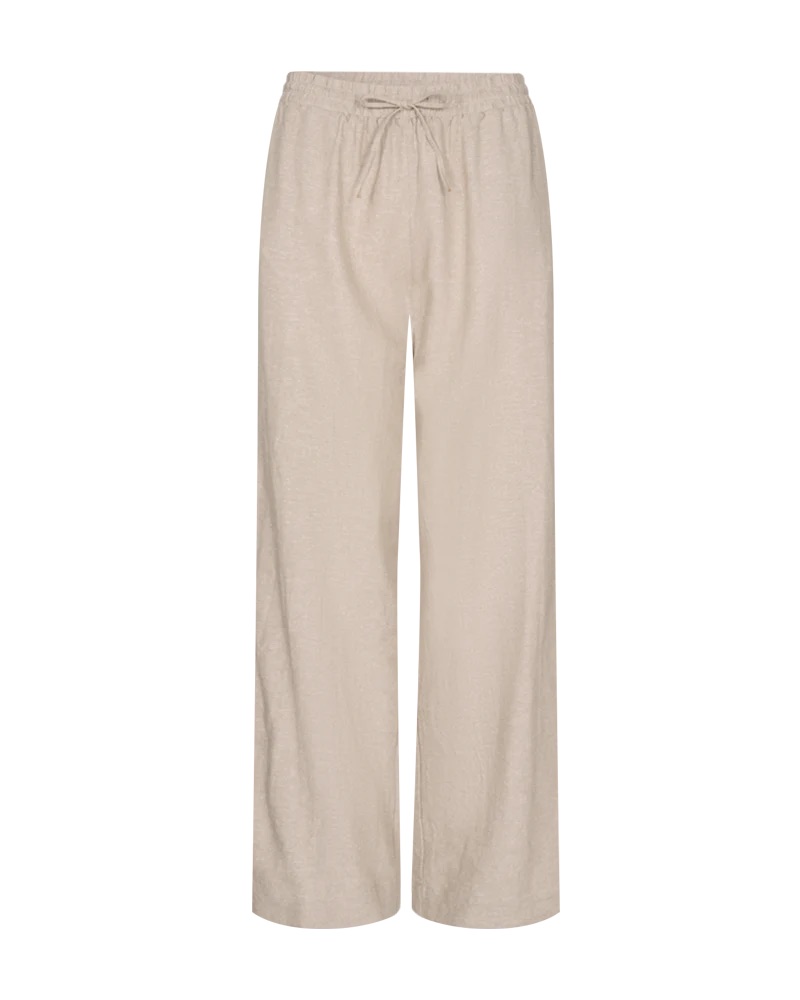 Linnen broek van Freequent met wijde pijpen, steekzakken en een elastische tailleband voorzien van trekkoord. Materiaal: Linnen 55%| viscose 45%