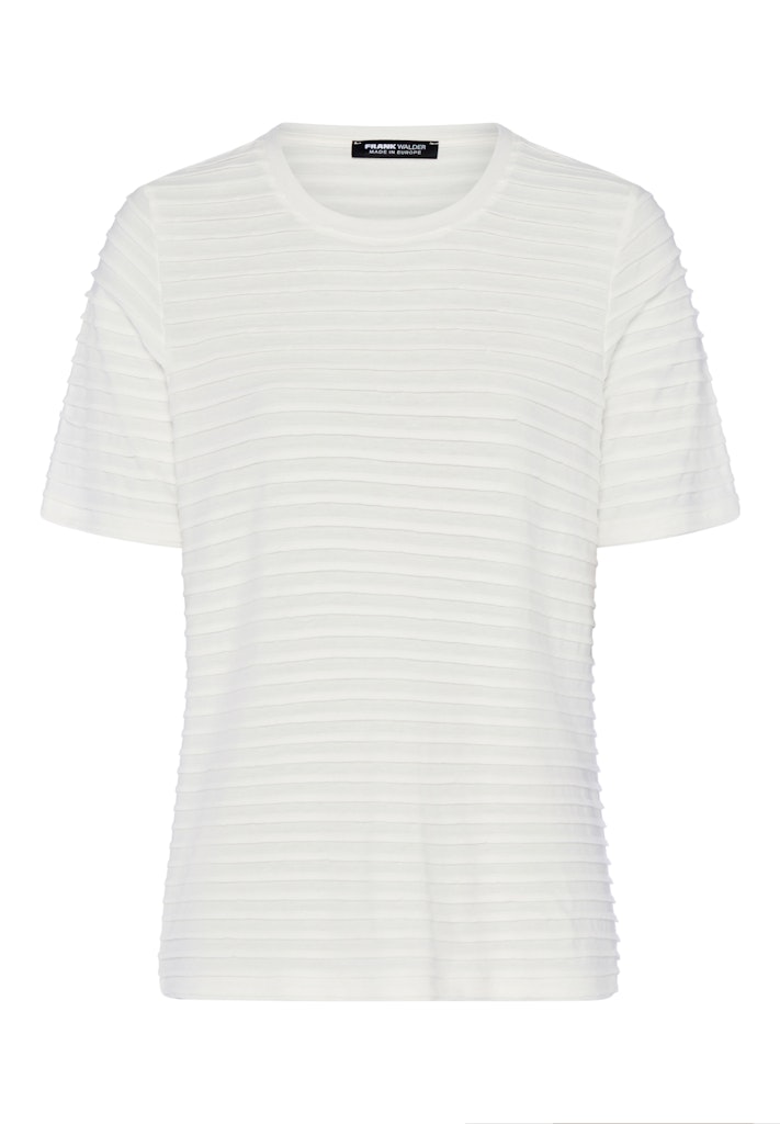 Shirt van Frank Walder in een gestreept structuur dessin met korte mouwen en een ronde hals. Materiaal: Katoen 50%| viscose 50%