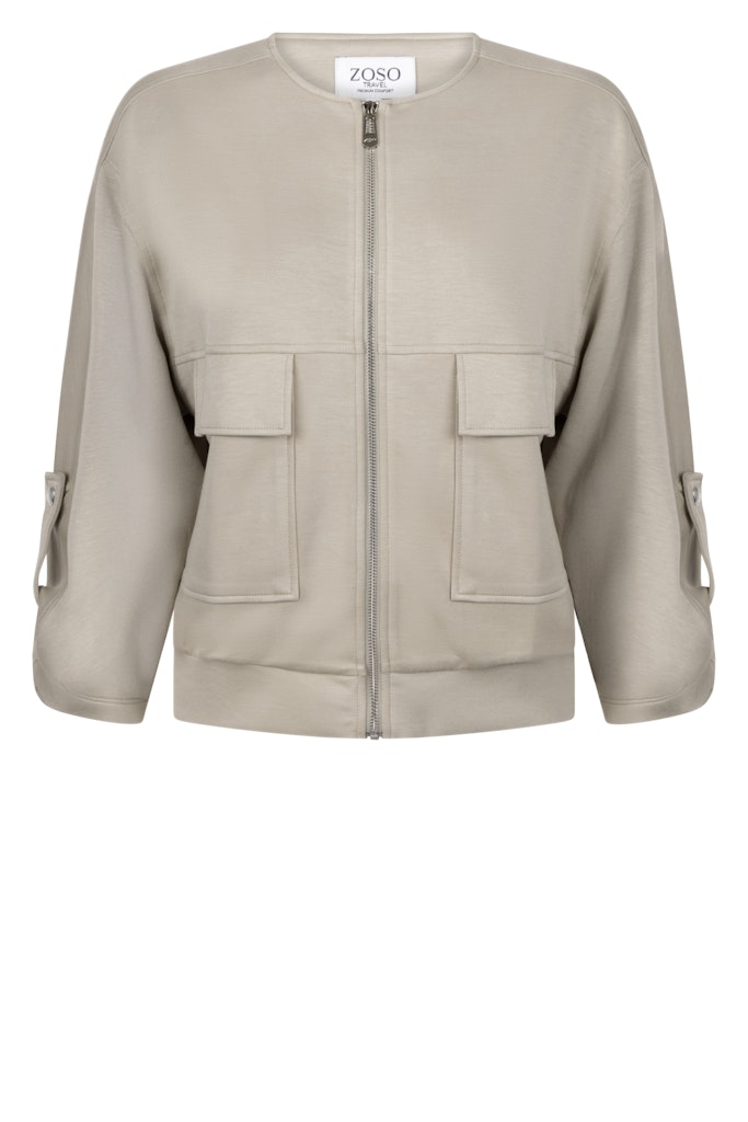 Jacket van Zoso met een ronde hals, ritssluiting, driekwart mouwen voorzien van gesp en klepzakken. Materiaal: Polyester 60%| modal 46%| elastan 6%