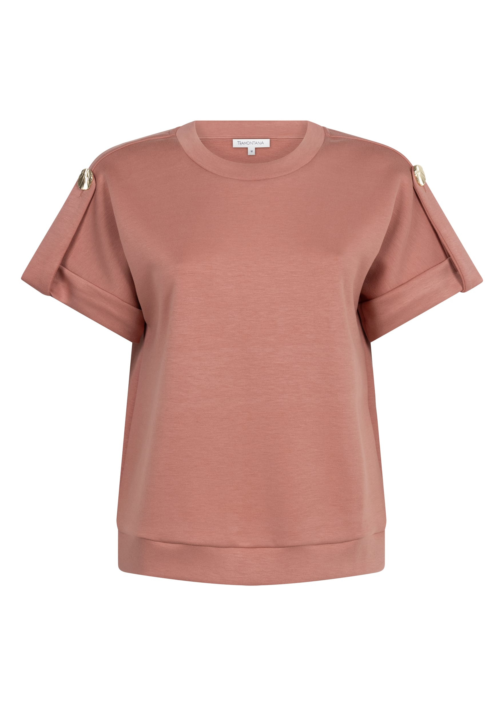 Sweat top van Tramontana met een ronde hals en korte mouwen voorzien van omslag en epauletten. Materiaal: Viscose 55%| polyester 40%| elastan 5%