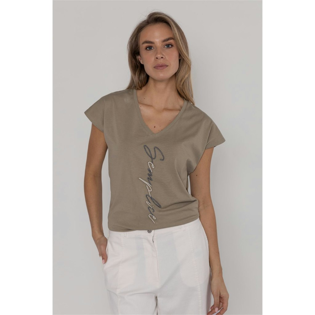 T-shirt van Poools met korte mouwen, V-hals en geborduurde tekst op de voorzijde. Materiaal: Katoen 100%