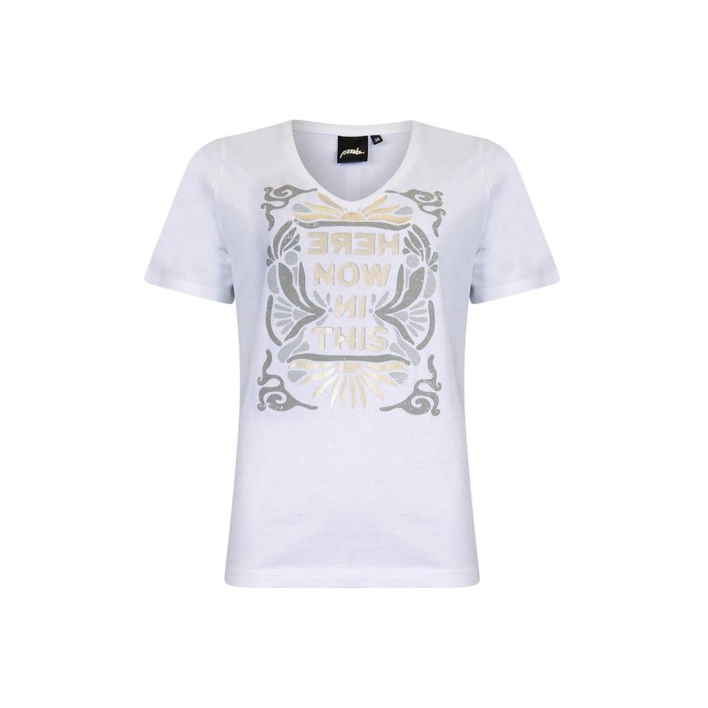 T-shirt van Poools met korte mouwen, V-hals, artwork op de voorzijde en een glanzende bies aan de achterzijde. Materiaal: Katoen 100%