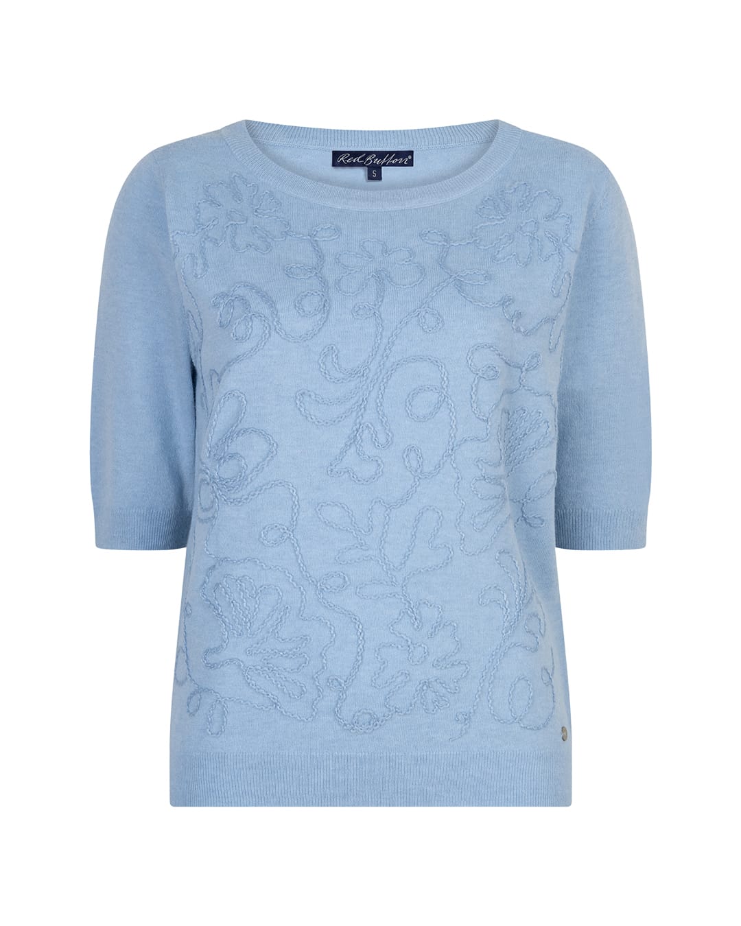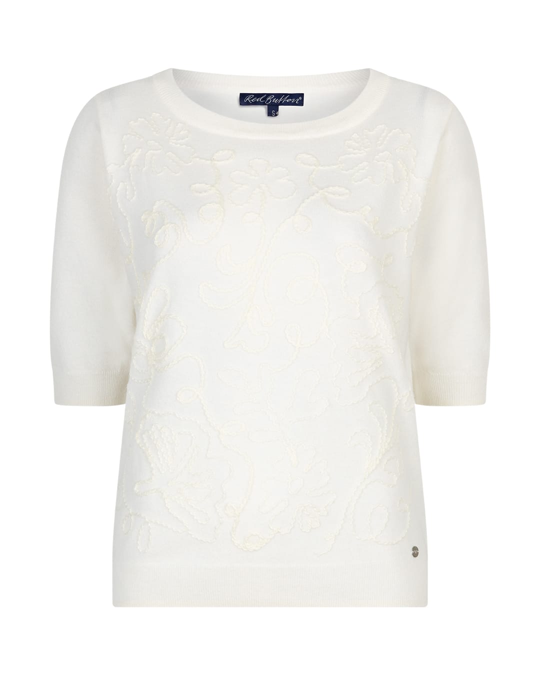 Gebreide top van Red Button met borduursels aan de voorzijde, korte mouwen, ronde hals en ribboorden.