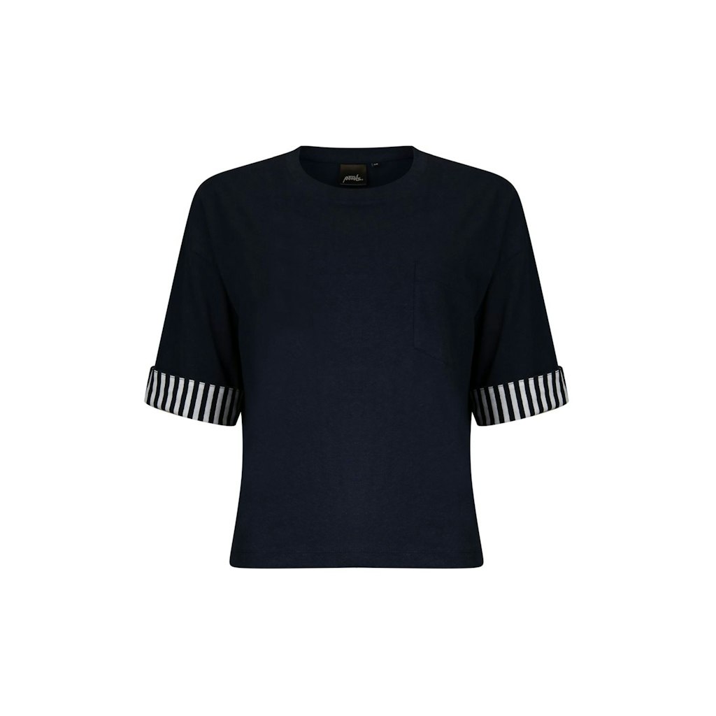 Boxy T-shirt van Poools met een ronde hals, borstzak en halflange mouwen voorzien van gestreepte omslag. Materiaal: Katoen 90%| linnen 10%