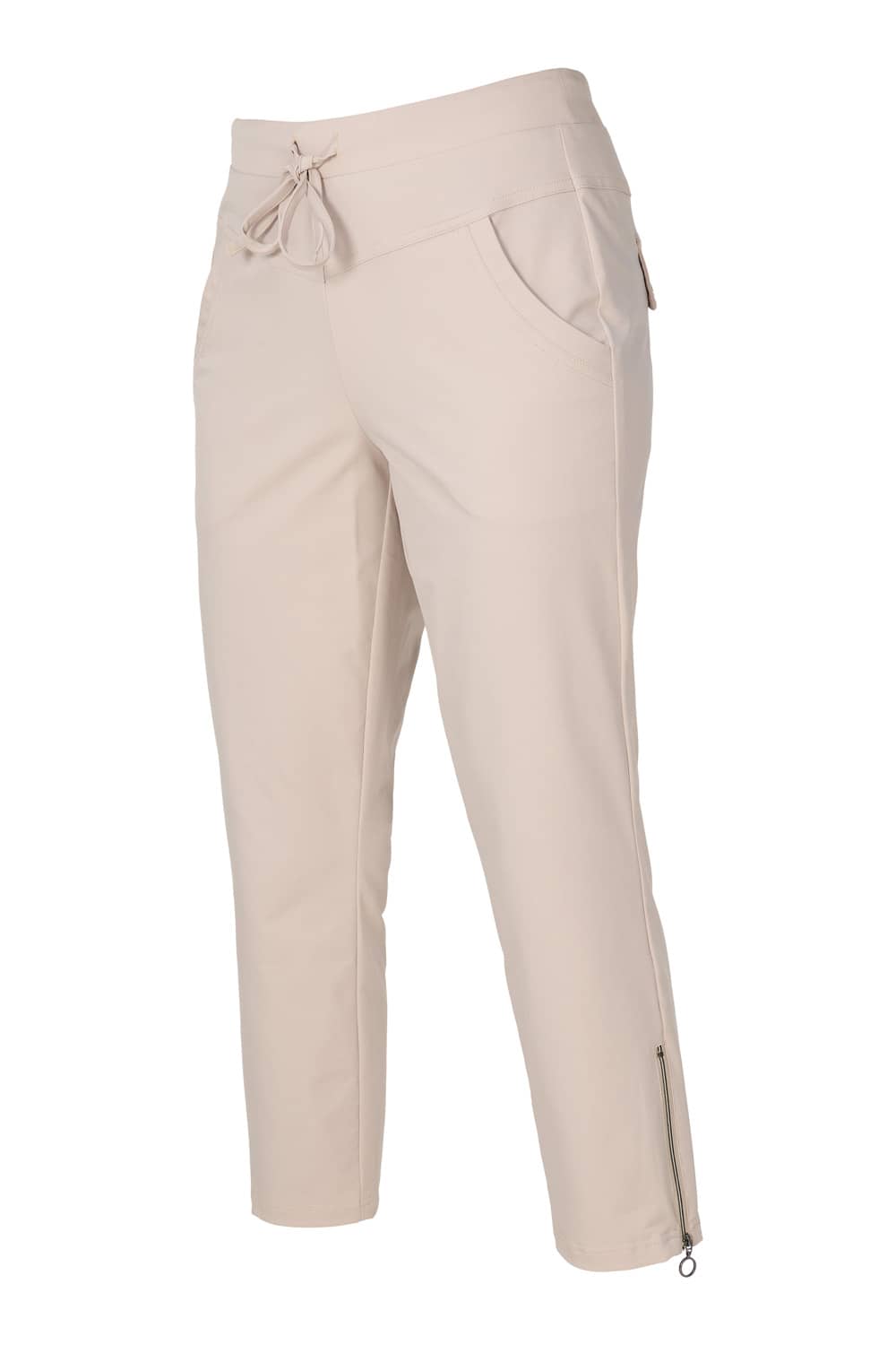 7/8 broek van Dreamstar in travel kwaliteit met steekzakken, klepzakken aan de achterzijde, ritsen in de pijpen en een elastische tailleband voorzien van trekkoord. Materiaal: Polyamide 87%| elastan 13%