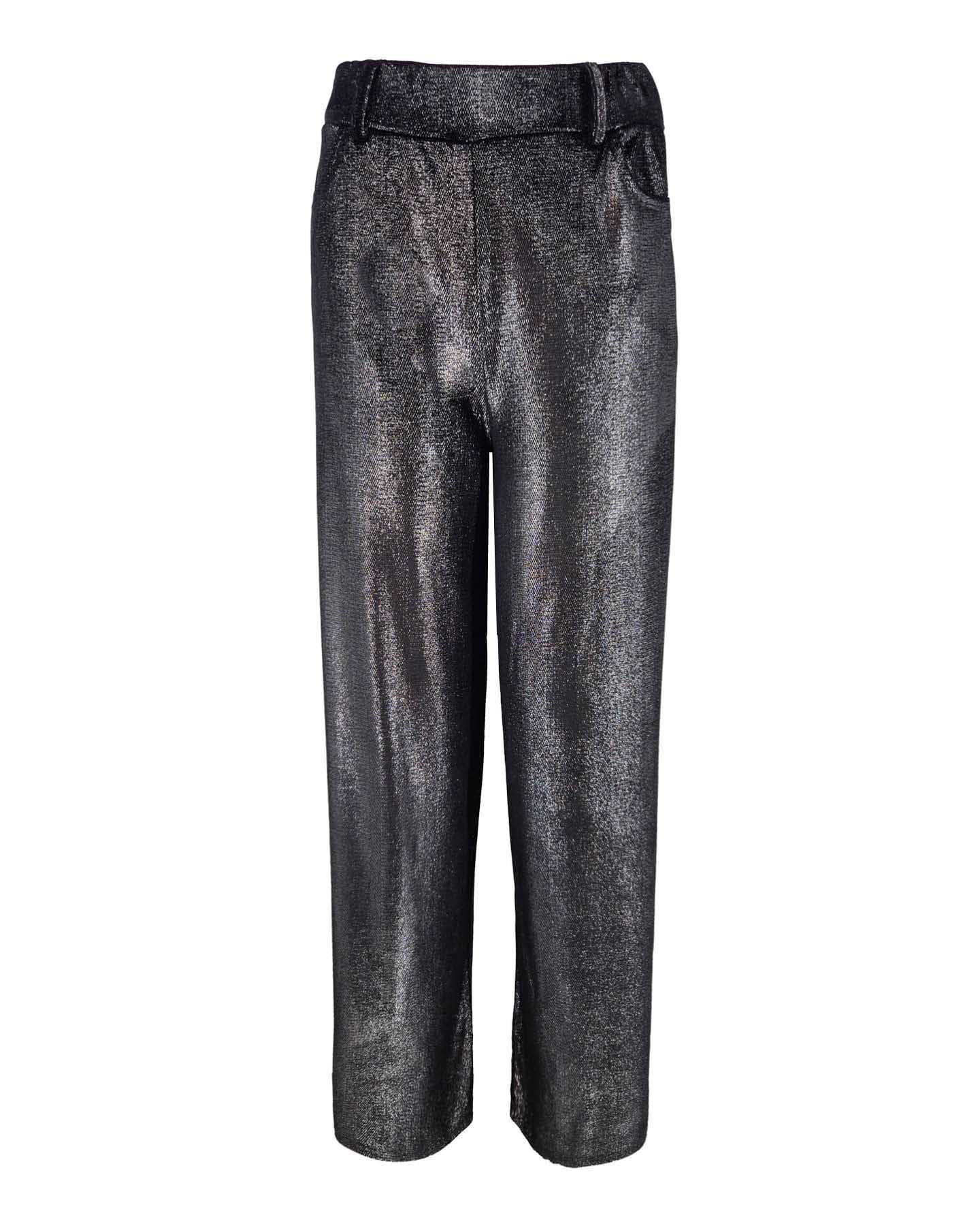 Glanzende broek van Fos Amsterdam in een lurex velours stof met wijde pijpen en een elastische tailleband. Materiaal: Polyester 955| elastan 5%