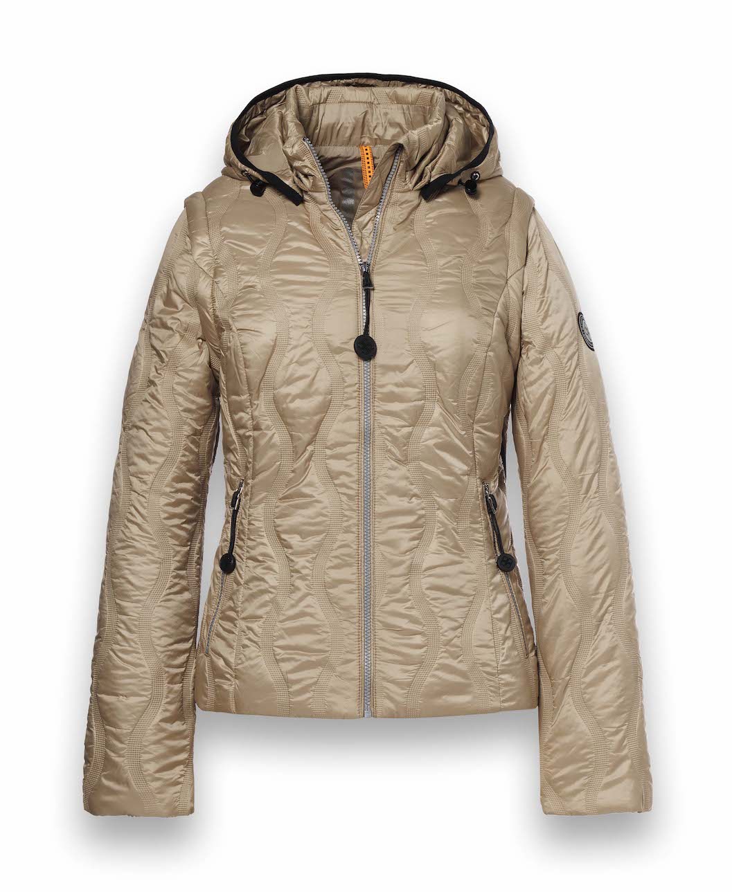 Gewatteerd jack van District met uitritsbare mouwen, ritssluiting, opstaande kraag, afneembare capuchon voorzien van drawstring en twee ritszakken.