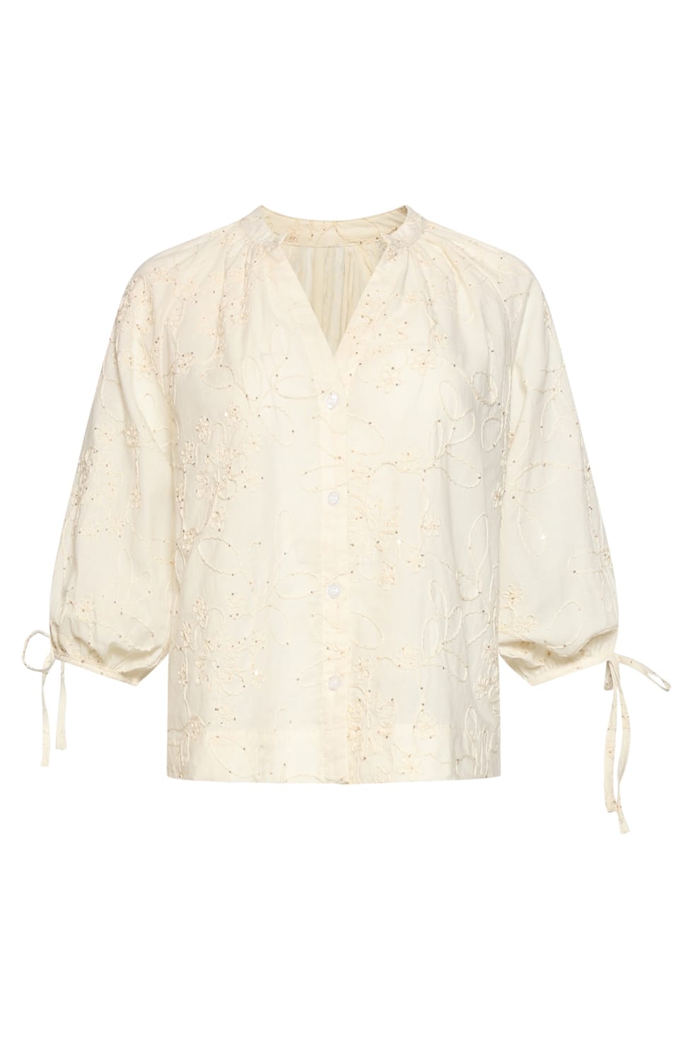 Luchtige blouse van Smashed Lemon met sielijk borduurwerk, driekwart raglanmouwen voorzien van strikdetail, opstaande kraag, V-hals en een knoopsluiting. Materiaal: Katoen 100%