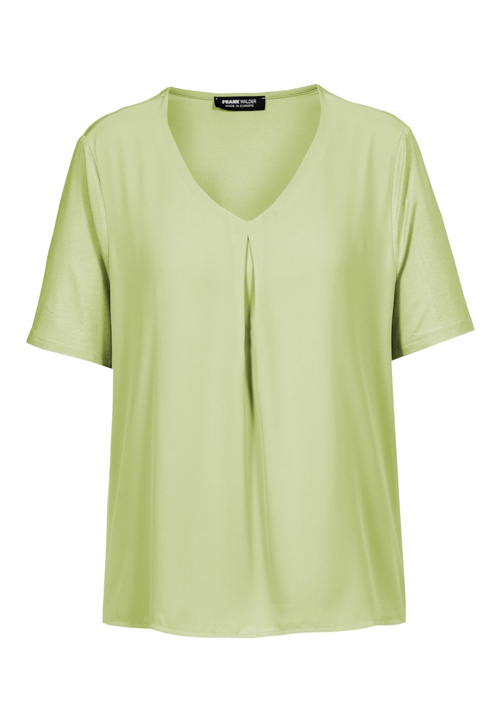 Shirt van Frank Walder met korte mouwen en een V-hals voorzien van ingestikte plooi. Materiaal: Viscose 93%| elastan 7%