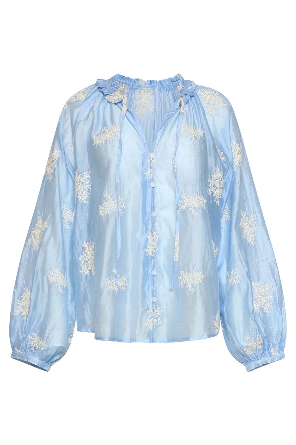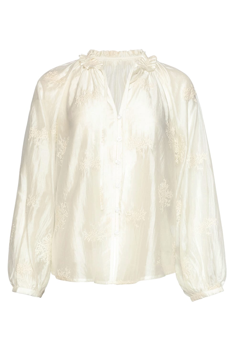 Transparante blouse van Smashed Lemon met borduursels, lange mouwen, knoopsluiting, ruches ronde de kraag en een V-hals voorzien van koordjes.