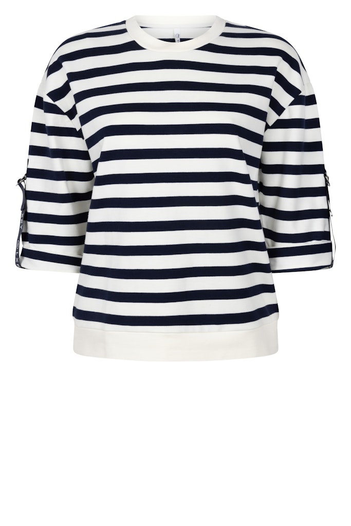 Gestreepte sweater van Zoso met driekwart hold-up mouwen, ronde hals en een elastische boord aan de onderzijde. Materiaal: Katoen 95%| elastan 5%