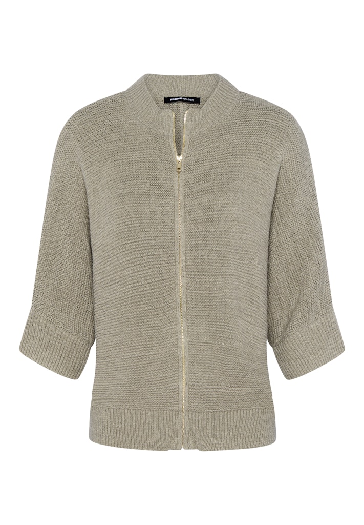 Vest van Frank Walder met driekwart aangeknipte mouwen, ritssluiting, opstaande kraag en ribgebreide boorden.