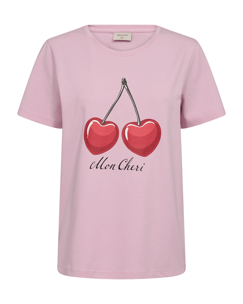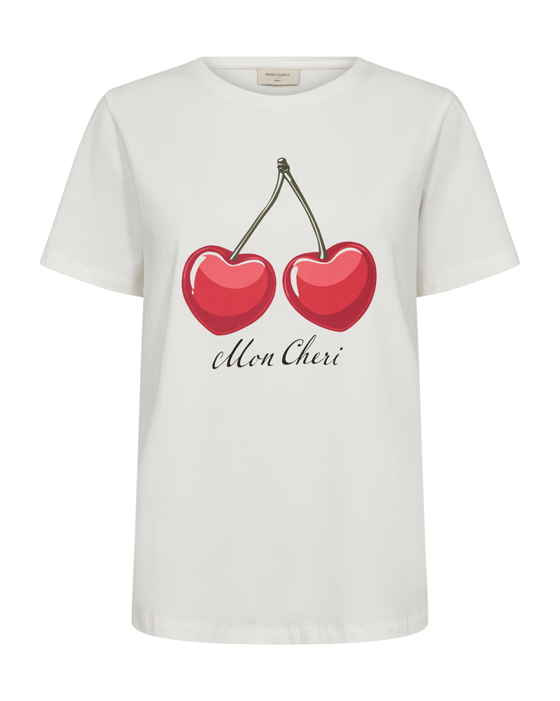 T-shirt van Freequent met korte mouwen, ronde hals en een kersenprint aan de voorzijde. Materiaal: Bio katoen 95%| elastan 5%