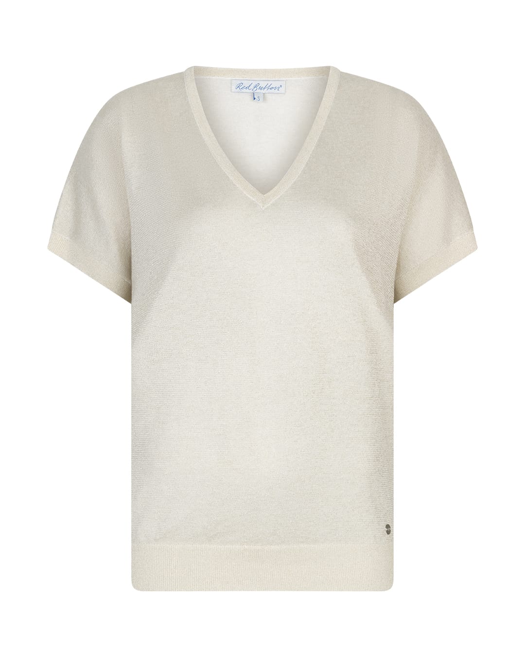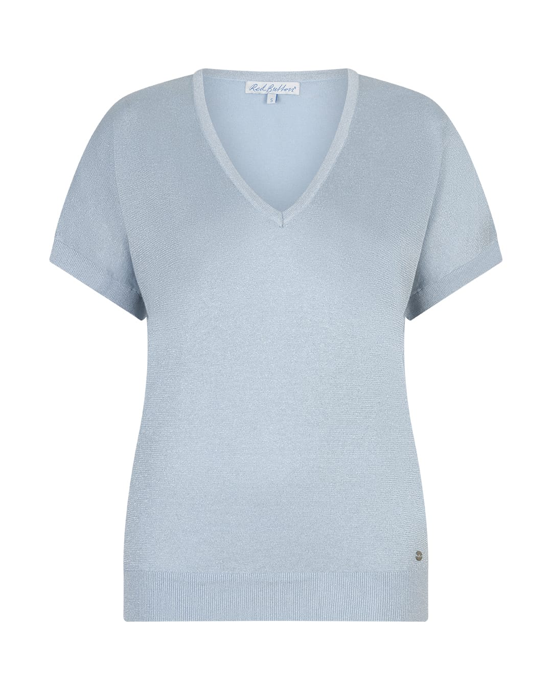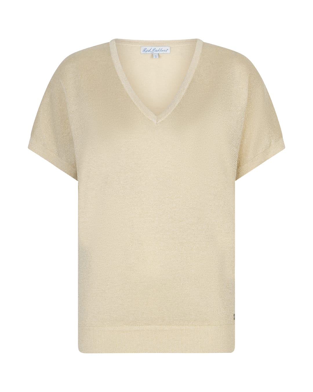 Fijngebreide trui van Red Button met een lichte glitter, korte mouwen, V-hals en ribgebreide boorden. Materiaal: Ranie 47%| katoen 38%| metallic 15%